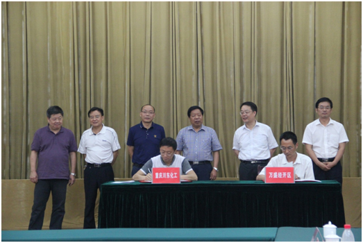 6月11日下午,公司董事長高光凡、黨委書記李國勝、總經(jīng)理李桂君率集團(tuán)領(lǐng)導(dǎo)班子冒雨趕赴萬盛,與萬盛經(jīng)開區(qū)管理委會簽定精細(xì)化工項目投資協(xié)議。此舉標(biāo)志著渝川東進(jìn)駐萬盛經(jīng)開區(qū)煤電化園區(qū)取得實質(zhì)性進(jìn)展。